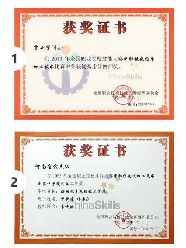 其中2011年马晓勇获全国中等职业学校技能大赛现代制造类车工组一等奖,填补了我省在全国大赛上(现代制造类)没有一等奖的空白,省教育厅专门发来贺电以示祝贺。目前我校成为了河南省中等职业学校现代制造技术类专业综合实力强的技工院校之一。